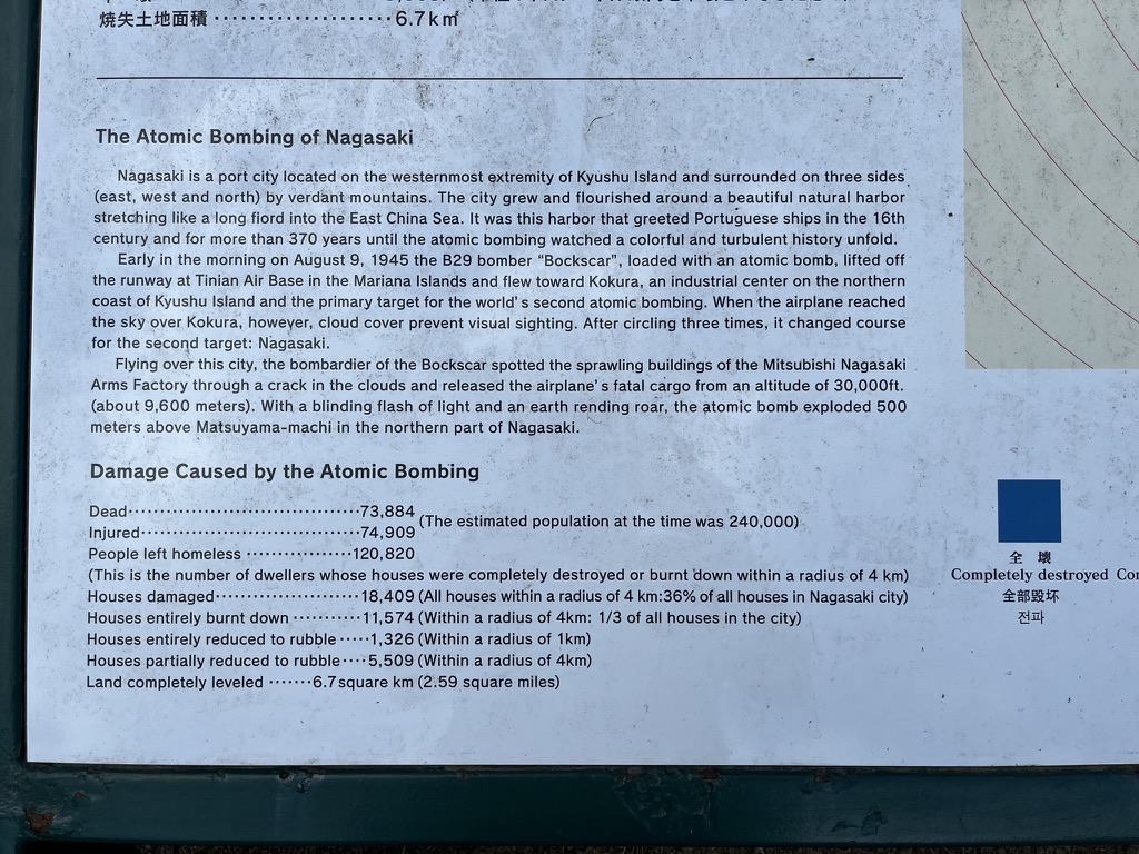 After visiting the Hypocentre and peace park I stated heading over to the Museum and it was well worth going to it. It was not a slander against the west of anything like that. It showed you pictures of what Nagasaki looked like before the bomb was dropped, pictures of just after it was dropped and pictures and videos of what it was like several days and years later, plus people’s testimonies.