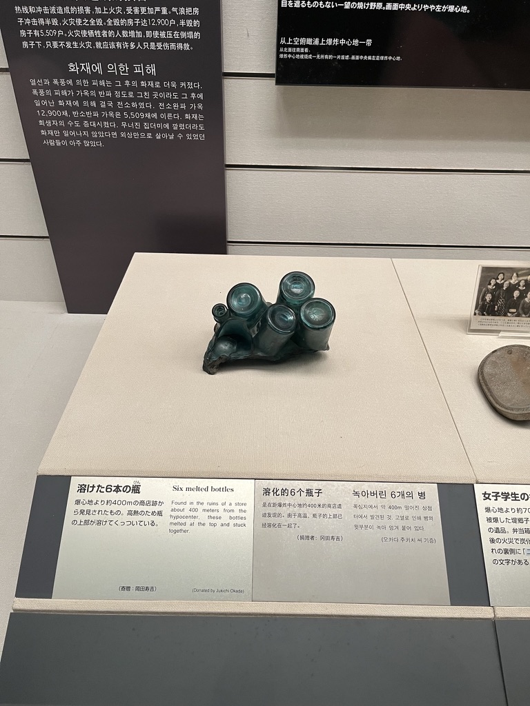 Here are some of the exhibits which speak more than 1000 words. I am trying to be careful exactly what I put up as I don’t want to make this a very graphic blog. Looking at some of the photos in the exhibit they did include photos that had the destruction, death and devastation that was caused by the bomb.