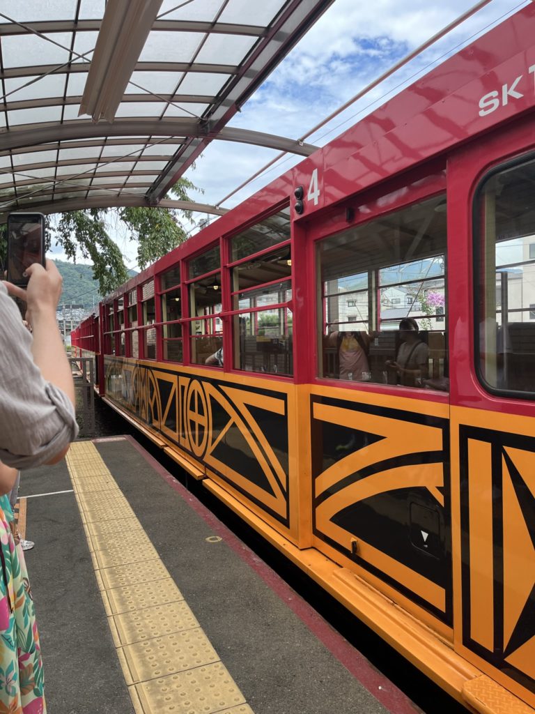 After doing this I was traveling all the way up to Amanohashidate on the northern coast (Osaka is on the southern coast) and this was a fair bit of a journey as I wasn’t doing it all in one go, I was using a few trains to get there. The first one was a locally train from Kyoto station saga-Arashiyama station which didn’t take long. The reason for this was a scenic train I saw on NHK Japan (the English version of sky) also known as the Sanago scenic train (or Sanago Romantic Railway).