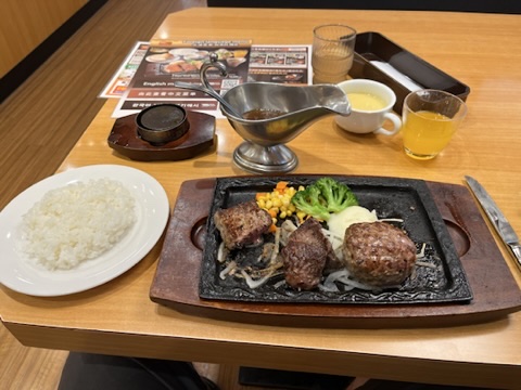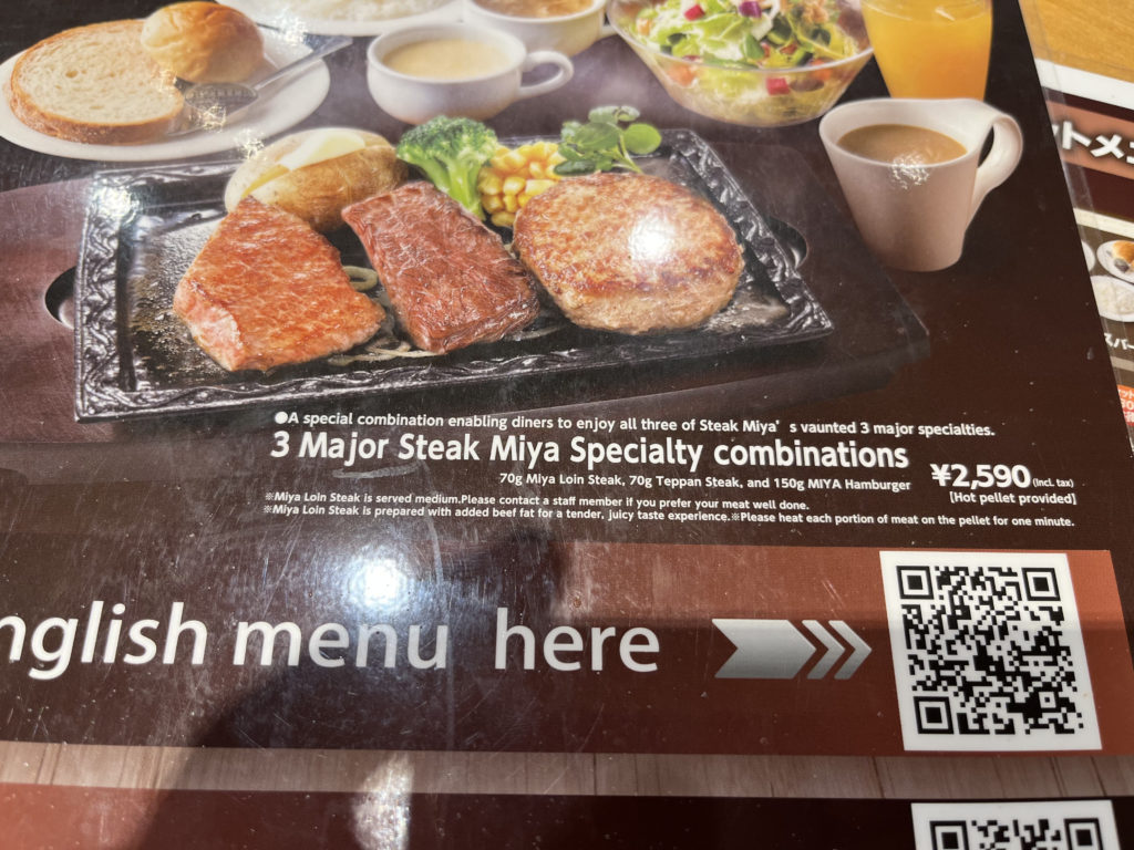 Now it was time to finally go back to looking at if I could go up Mt Iwaki-San which unfortunately still had a cloud covering the top so instead I went to get something to eat from somewhere I saw on the way in, and it looked nice as it said Steak and Hamburger.