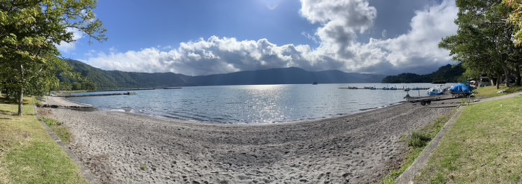 Instead of going straight to the hotel I stopped in the small community on the shores of the lake and rented out a swan boat. Now you probably don’t know this, but Lake Towada is in the caldera of an active volcano, and it got its distinctive shape from secondary eruptions in the past and then the lava domes collapsing. The surface of the lake measures 23.6 Sq. Miles.