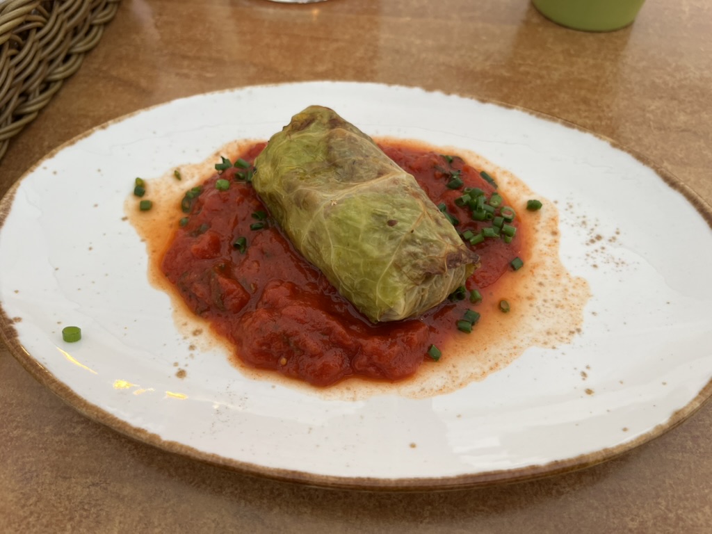 Afterwards I went to a restaurant called Awiw, where there was live music, and they server a mix of both Jewish and Polish food. For starters I got a Jewish dish called Cabbage Roll “holishkes”, which is ground meat wrapped in cabbage with a tomato sauce.