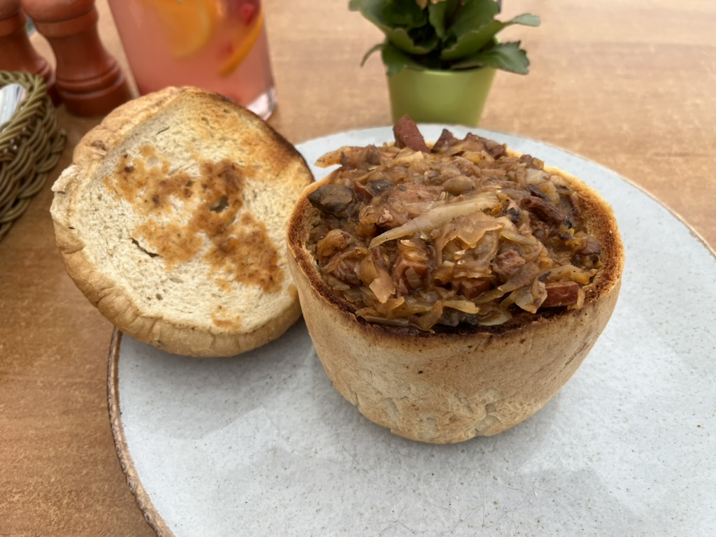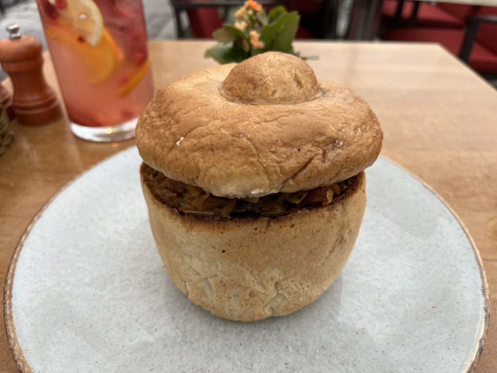 For my main, I got Bigos, which is a Polish hunters stew with venison, sausages, cabbage sauerkraut and mushrooms in it, and it came in an edible bread bowl, which made it even more tasty.