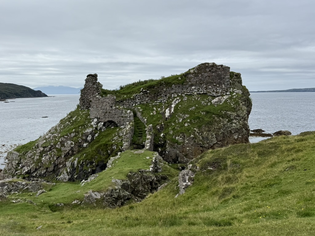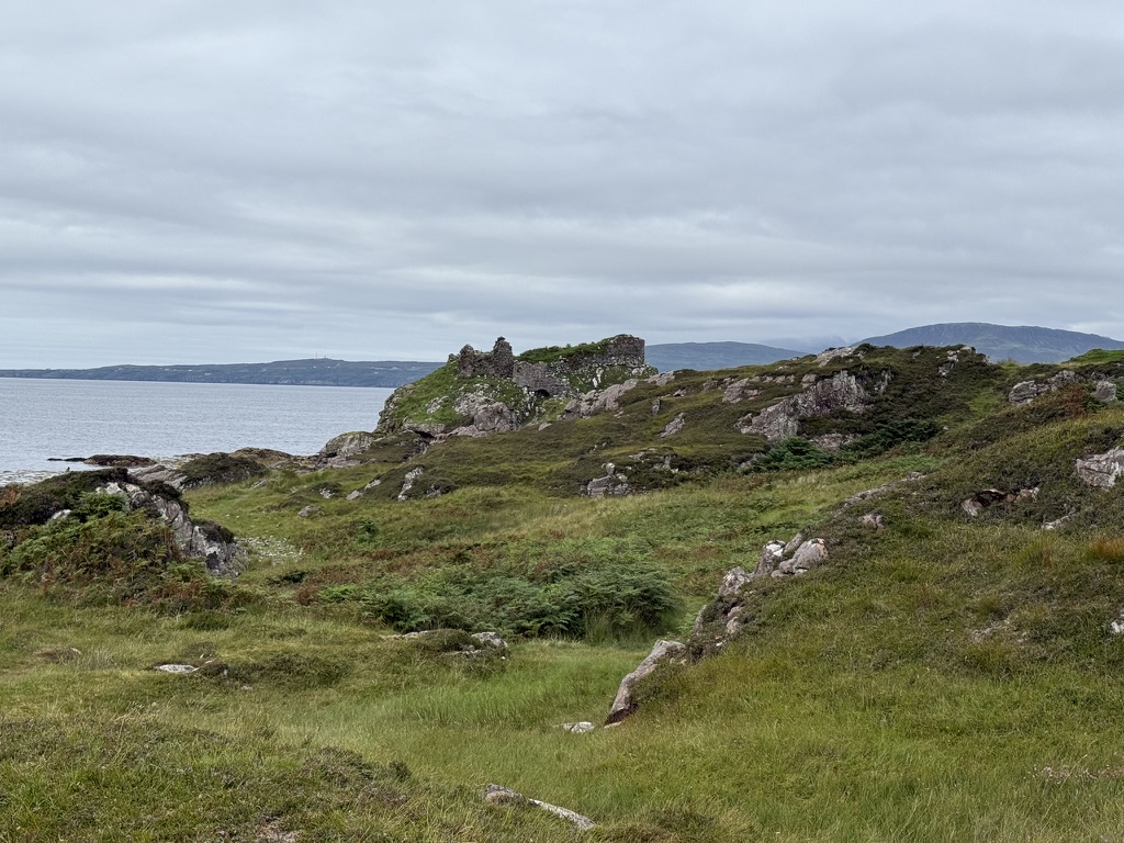 I was tempted to go into the ruins of Dunscaith Castle, but there was a slight problem with the fact that the bridge was missing a few stones from it, so it would have not been safe to go across to it unfortunately, but here are a few photos I was able to get of it.